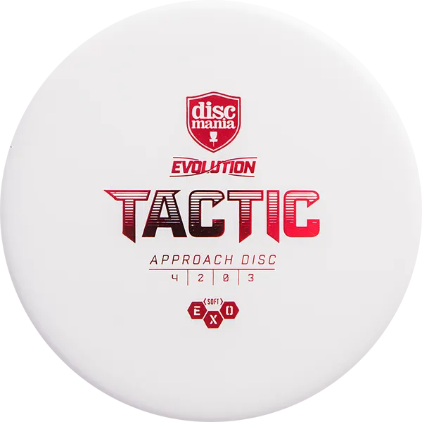 Soft Exo: The Soft Exo plastic helps the Tactic have more give to the flight plate allowing for players to really dig into their putters and get an incredible amount of grip on their disc. Being soft in rigidity and feel makes Soft Exo the plastic of choice for players looking to optimize comfort and grip.